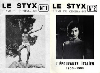 En décembre 1969, Denis Torre et Thierry Olive, qui avaient l'intention de créer leur fanzine, s'en ouvrirent à Alain Schlockoff (décidément!) qui leur déconseilla le titre primitivement envisagé: L'Univers du Fantastique, prétextant qu'avec HORIZONS DU FANTASTIQUE, MIDI-MINUIT-FANTASTIQUE, MIROIR DU FANTASTIQUE, L’ÉCRAN FANTASTIQUE, on été déjà bien assez paumés comme ça. Et de proposer divers titres, dont notamment Salut les Monstres (!), Le Transylvanien Libéré (?), LE STYX, etc. Sautant sur l'occasion, LE STYX fit donc son apparition vers le milieu 70. Six mois plus tard, ce fut le n°2. Ces deux numéros comportaient une quarantaine de pages et traitaient de films en cours de distribution. Notons quelques articles plus ambitieux dont un "Panoramique du cinéma fantastique" qui visait à définir les diverses branches de ce genre. Également un article sur le cinéma fantastique mexicain, un survol de la lycanthropie au cinéma et un dossier sur Bela Lugosi ou "Un certain Bel Blasko" qui, lui, semblait plus ou moins pompe sur "Un certain n° de BIZARRE". C'était un Torre!